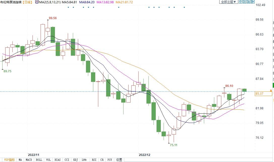 北京时间1月3日10:50,布伦特原油主力合约价格报85.40美元/桶。