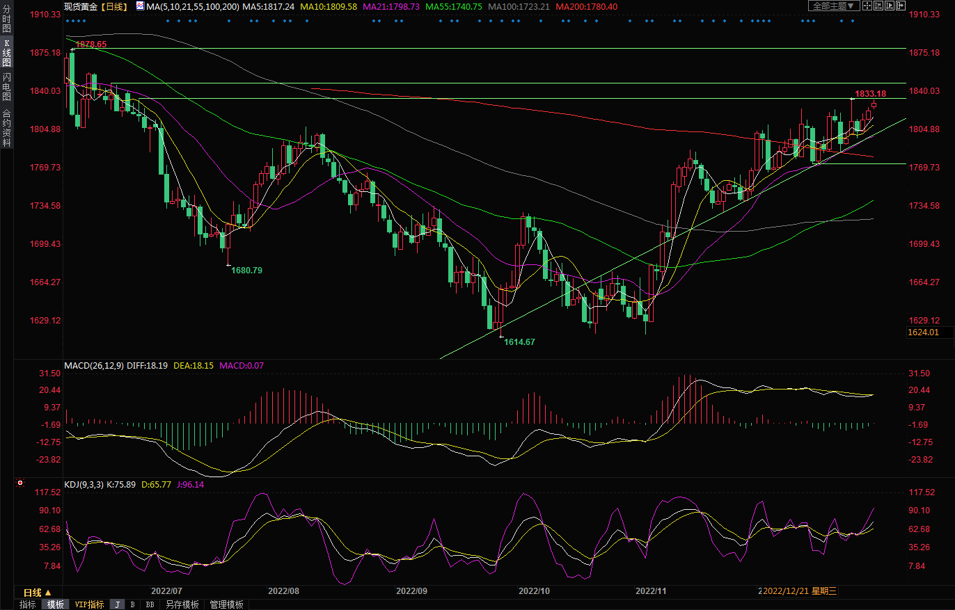 整体来看,在经过2022年的持续多次大幅度加息后,美联储2023年的加息空间有限,而且随着通胀放缓的迹象越来越多,市场对美联储2023年可能降息预期会逐步升温,这将在中长线给金价提供进一步上涨机会。另外,对全球经济衰退和地缘局势的担忧,也偏向利好黄金后市。短线而言,目前基本面和技术面也略微偏向多头,本周金价也偏向震荡上行。