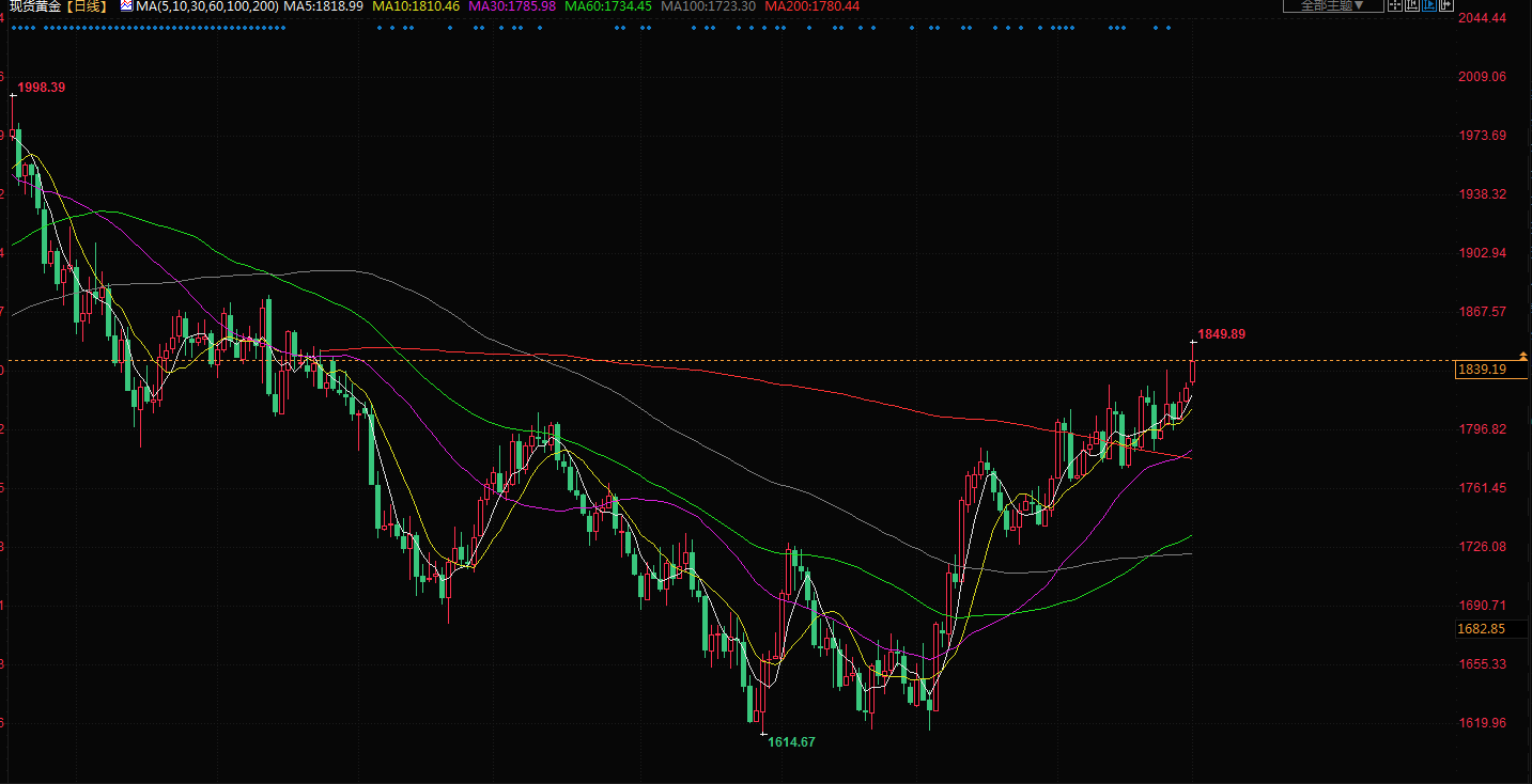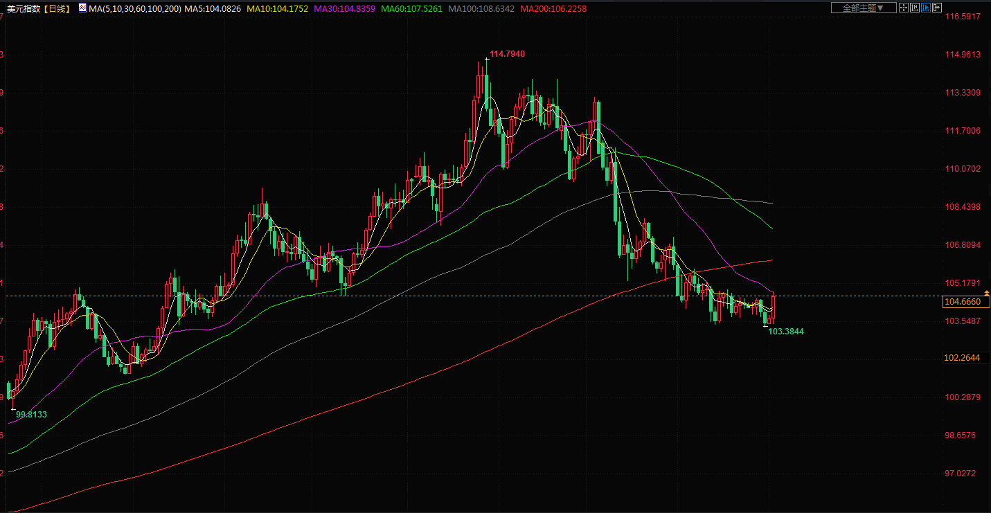 指标美国10年期国债收益率接近一周来最低,这降低了持有不孽息黄金的机会成本。美元指数跳涨1%。
