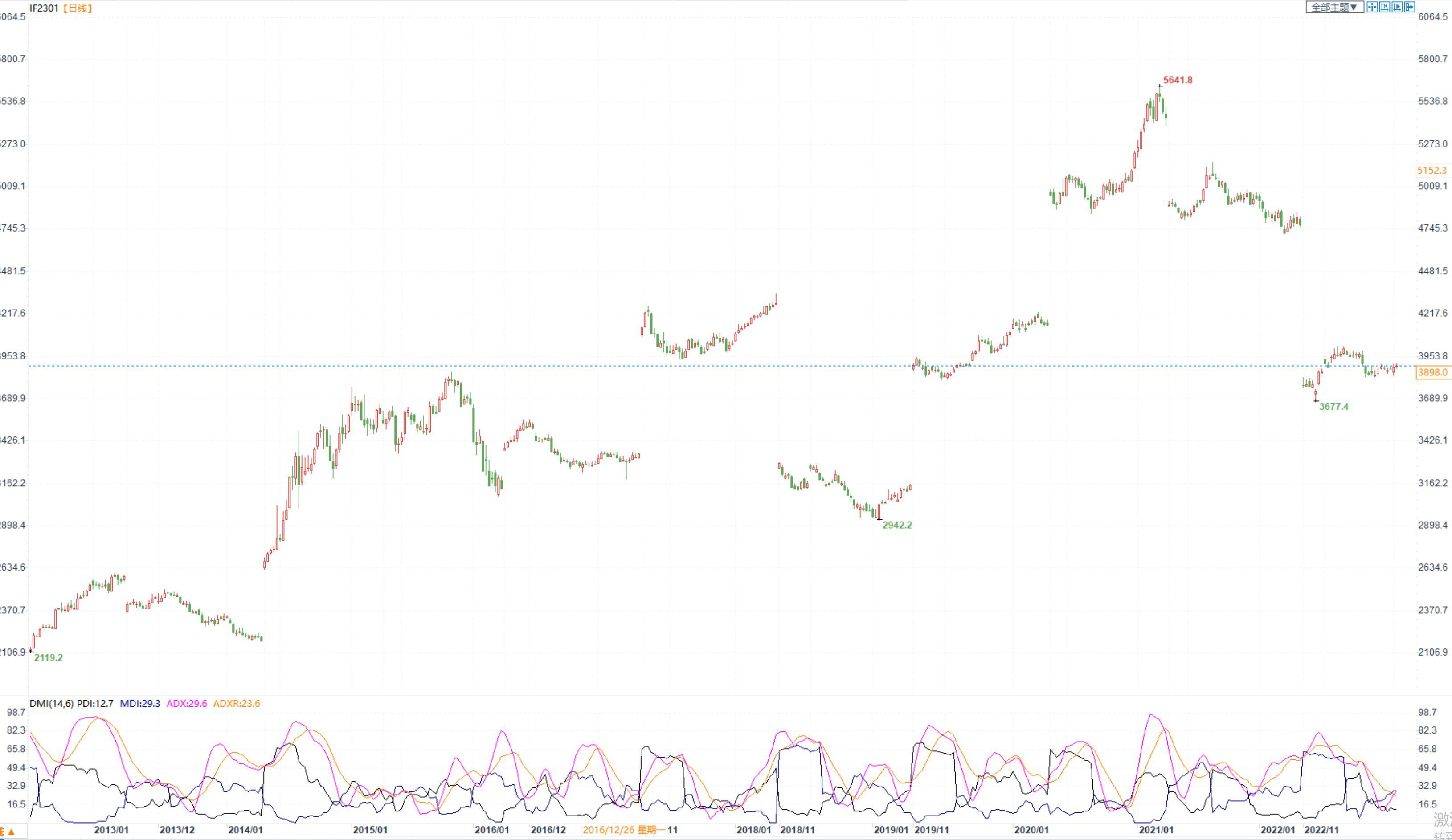 【今日涨跌】四大期指涨跌互现。IH2301收盘价为2654.2,收涨0.11%;IF2301收盘价为3898.0,收跌0.06%;IC2301收盘价为5957.0,收跌0.16%;IM2301收盘价为6414.4,收跌0.18%。