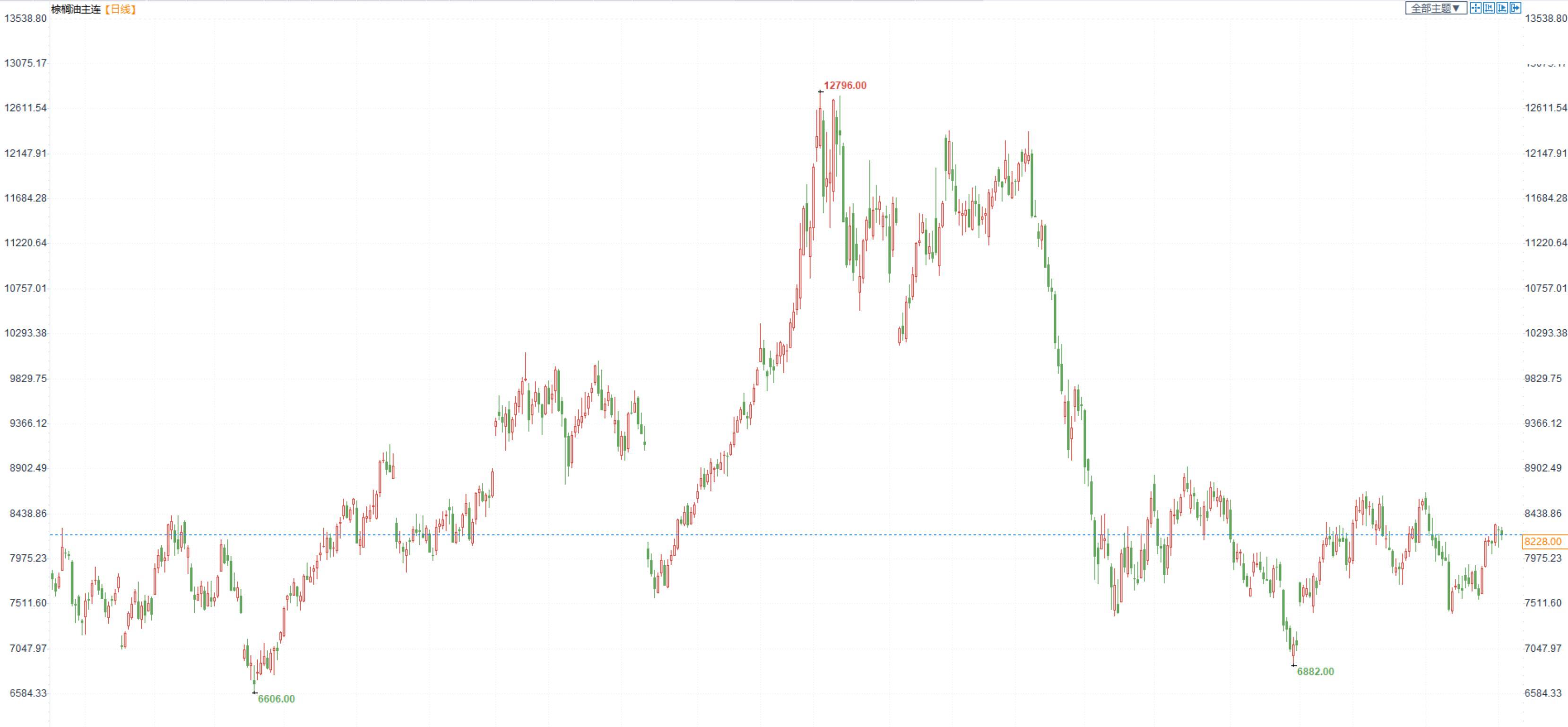 棕榈油2305合约日内涨0.05%,收盘8228元/吨;广州市场棕榈油8030元/吨。