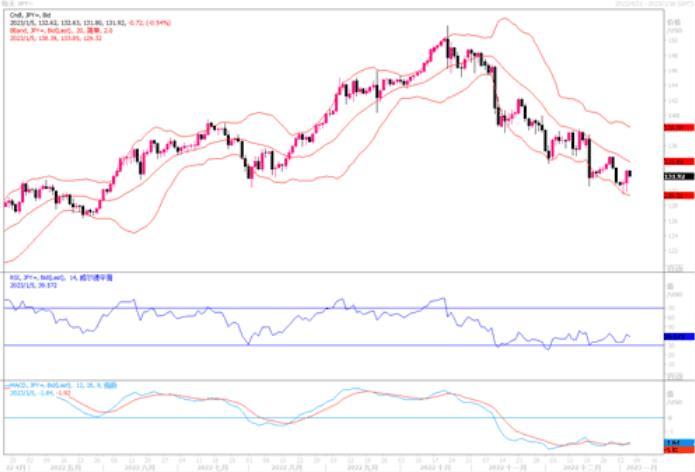 周三(1月5日)美元指数下跌,欧元兑美元上涨0.53%,收盘在1.0604,盘中最好触及1.0635。当天美国联邦储备理事会12月的会议记录没有就2月预期加息规模提供惊喜或新信息。纪要内容主要显示,美联储上个月加息50个基点,美联储官员同意放慢加息步伐,将使他们能够继续增加信贷成本,以渐进的方式控制通胀,旨在限制经济增长的风险。联邦基金利率期货交易员认为美联储2月份继续放缓加息步伐至25个基点的可能性为67%。美元的回软,暂时挽住了前个交易日大跌欧元的跌势。仅从日线图上观察,欧元兑美元汇价暂时还是徘徊于布林带中轨1.06附近,但技术指标还是未能解除向下行的趋向。若本周五美国非农数据强劲,还是要慎防欧元兑美元作进一步向下测试的走向趋势风险。