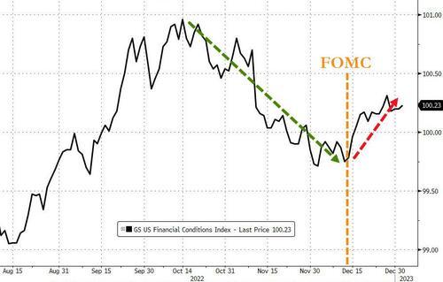 从金融市场上的金融状况指数看,在12月美联储决议释放决议后,美国的整体金融环境已有所收紧。