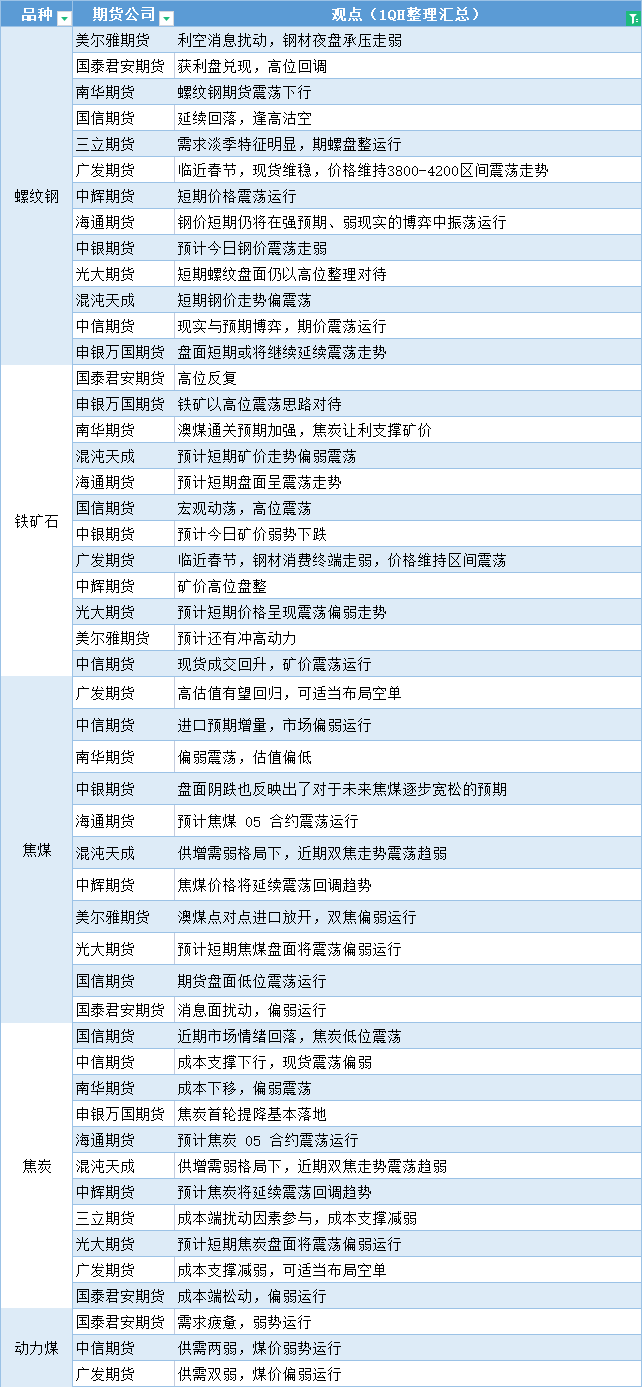 期货公司观点汇总一张图:1月5日黑色系(螺纹钢、焦煤、焦炭、铁矿石、动力煤等) Jan 05,2023 汇通财经APP讯——期货公司观点汇总一张图:1月5日黑色系(螺纹钢、焦煤、焦炭、铁矿石、动力煤等)