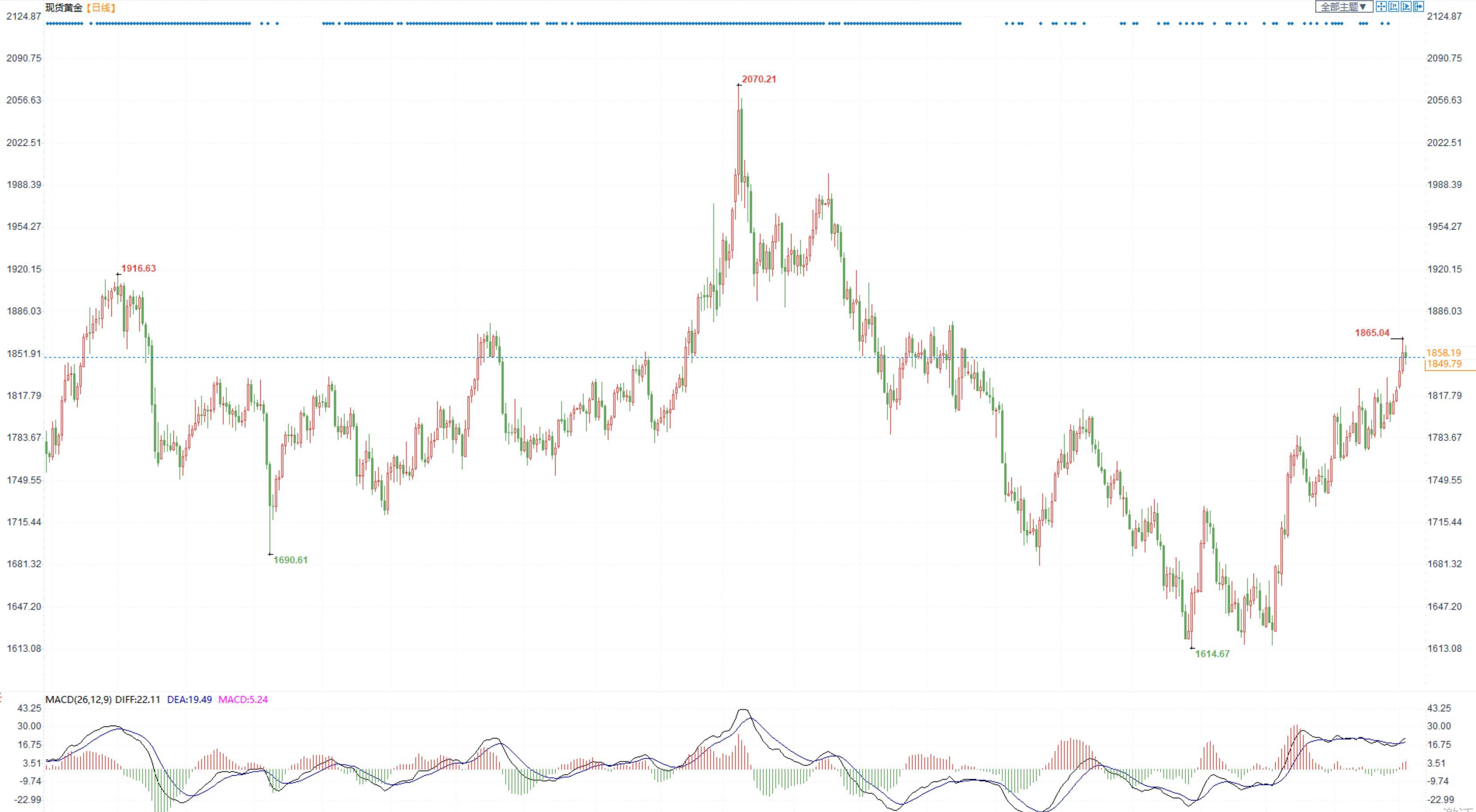 【今日行情】金银全线收跌。AU2304收盘价为412.50,收跌0.03%;AG2302收盘价为5210收跌2.82%。美元指数在104附近窄幅震荡,整体中枢震荡下移,对金银支撑为主。十年期美债收益率走弱至3.7%附近,对中期金银趋势性压制减弱。