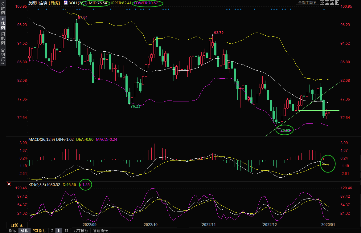 不过,70整数关口附近支撑较强,在跌破该位置前,油价仍可能维持宽幅震荡走势,上方初步阻力在5日均线75.77附近,布林线中轨阻力在76.54附近,10日均线阻力在77.38附近,若能收复该位置,则削弱短线看空信号。