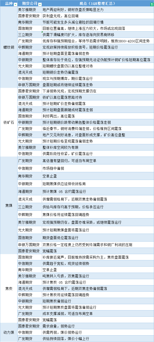 期货公司观点汇总一张图:1月6日黑色系(螺纹钢、焦煤、焦炭、铁矿石、动力煤等) Jan 06,2023 汇通财经APP讯——期货公司观点汇总一张图:1月6日黑色系(螺纹钢、焦煤、焦炭、铁矿石、动力煤等)