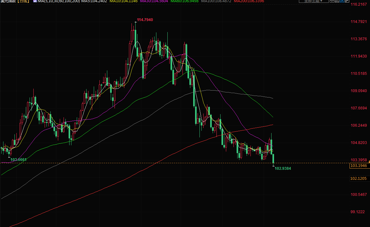 美元指数处于七个月低点,最新下跌0.81%,报103.033。该指数上周五下跌1.15%,因为投资者转向风险较高资产。美国通胀数据将于周四公布,价格压力前景将成为投资者关注的焦点。 Bankrate的首席金融分析师Greg McBride说,“对本周公布的消费者价格指数(CPI)的预期是,通胀压力进一步缓解,如果没有显示出广泛的改善,将令投资者不安,使美联储继续采取行动。”