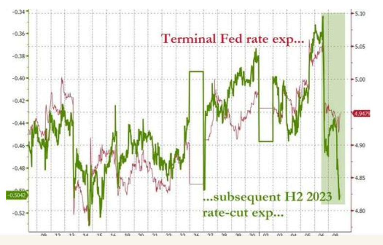 市场的走势其实很能反映出美联储眼下的“尴尬处境”:那就是无论与市场利率定价,还是最新的经济数据表现相比,美联储仍在坚持的鹰派立场都显得非常节节不入。