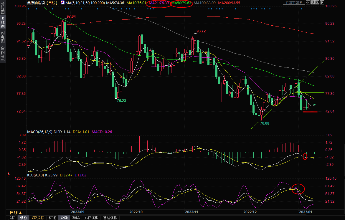 上方21日均线阻力在76.39附近,若能收盘于该位置上方,则削弱短线看空信号;进一步阻力在12月30日低点77.70附近,55日均线阻力在79.63附近,布林线上轨阻力在80.92附近,若能顶破该阻力,则增加中线看涨信号。