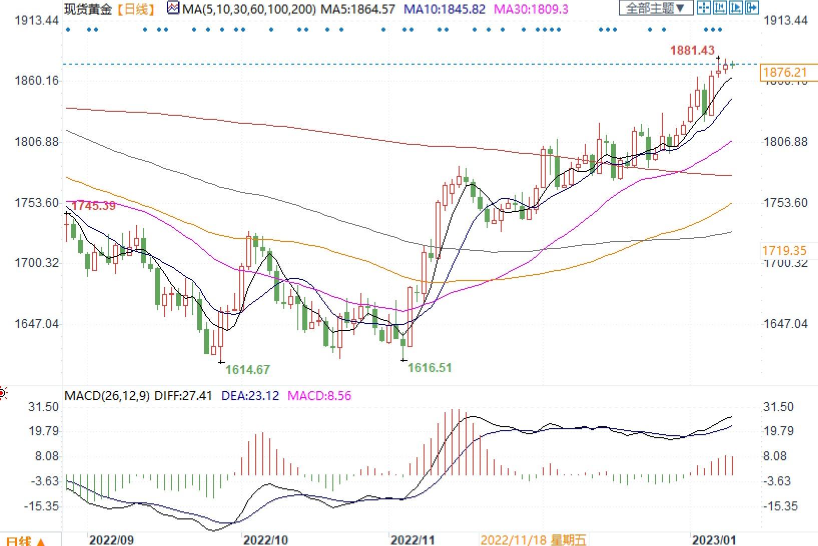 北京时间1月11日14:10,现货黄金报1882.41美元/盎司
