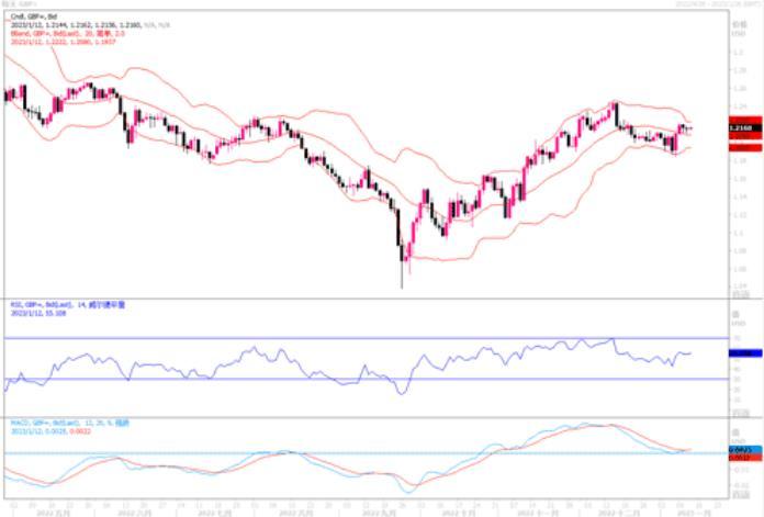 周四早间东京交易阶段,美元/日元东京盘初大幅下跌,从132.41左右最低跌至131.78,走势仍偏下档。在周四早间的,日本读卖新闻指出,日本央行将评估大规模宽松政策的副作用。该则消息,引发投资者对日本央行行将改变当前宽松货币政策的预期。然而,当前市场最聚焦的仍然是今晚美国12月份消费物价指数(CPI),数据升与跌将会在外汇市场上掀起较大波澜。在日线图上,尽管美元兑日元仍处于布林带下轨和下降通道之中,但RSI、MACD等技术指标与价格走势线均似乎有底背离迹象在形成,因此要警惕美元兑日元近期的触底反弹风险。上方若顶穿135,则进一步反弹的目标指向138-140区域。而下方能不能继续走远,则要视130这个关键支撑位置能否被扫清。