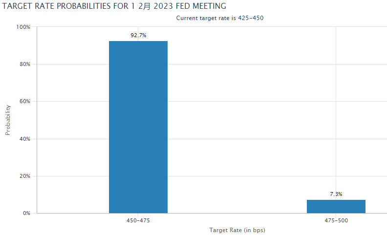 芝商所的“联储观察”工具显示,投资者现在认为美联储这次会议升息25个基点的机率超过90%,大幅高于美国12月通胀数据公布前的75%。