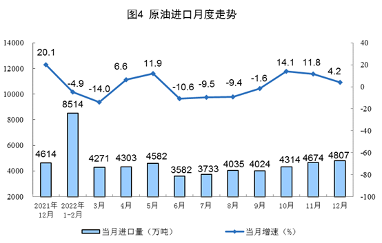进口数据来源于海关总署,其中2022年12月份数据为快讯数据。