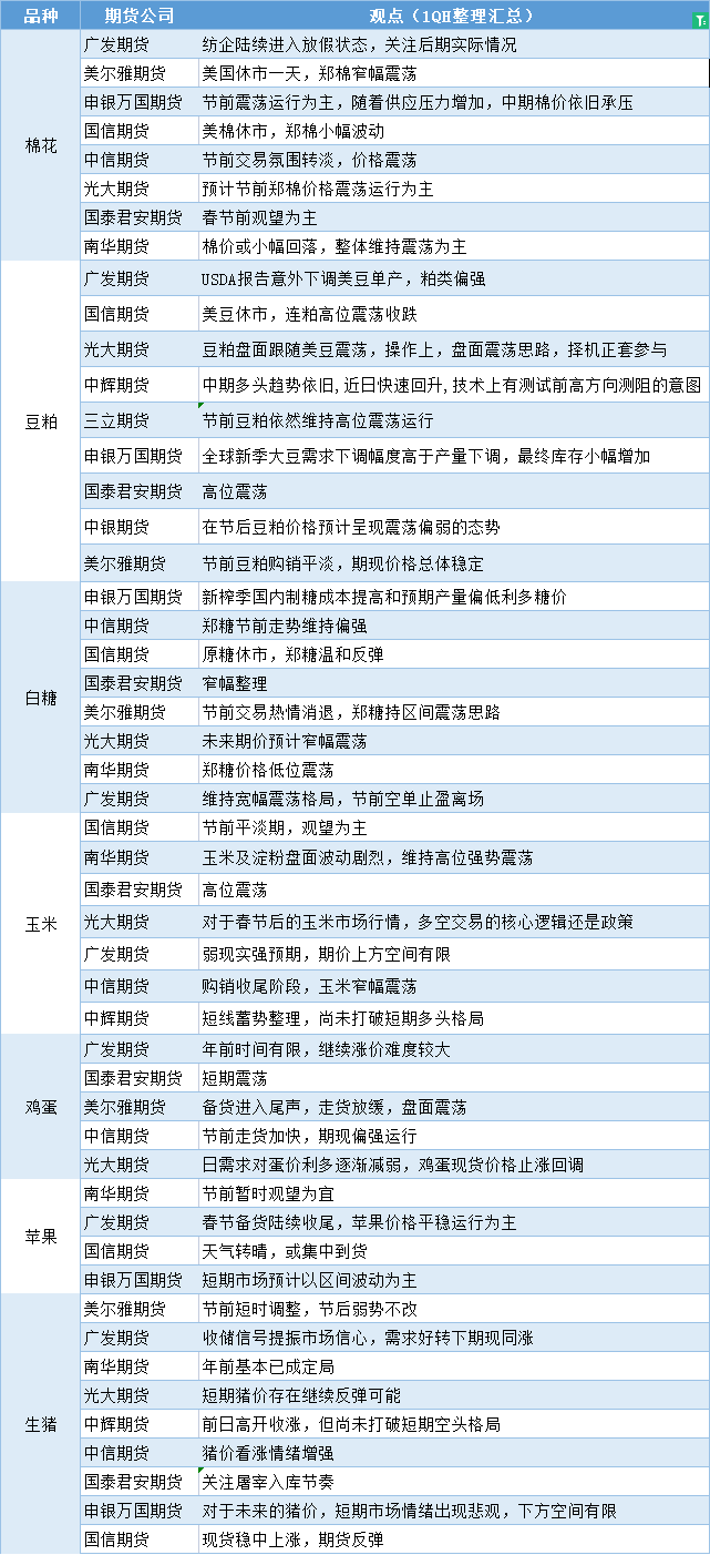 期货公司观点汇总一张图:1月17日农产品(棉花、豆粕、白糖、玉米、鸡蛋、生猪等) Jan 17,2023 汇通财经APP讯——期货公司观点汇总一张图:1月17日农产品(棉花、豆粕、白糖、玉米、鸡蛋、生猪等)