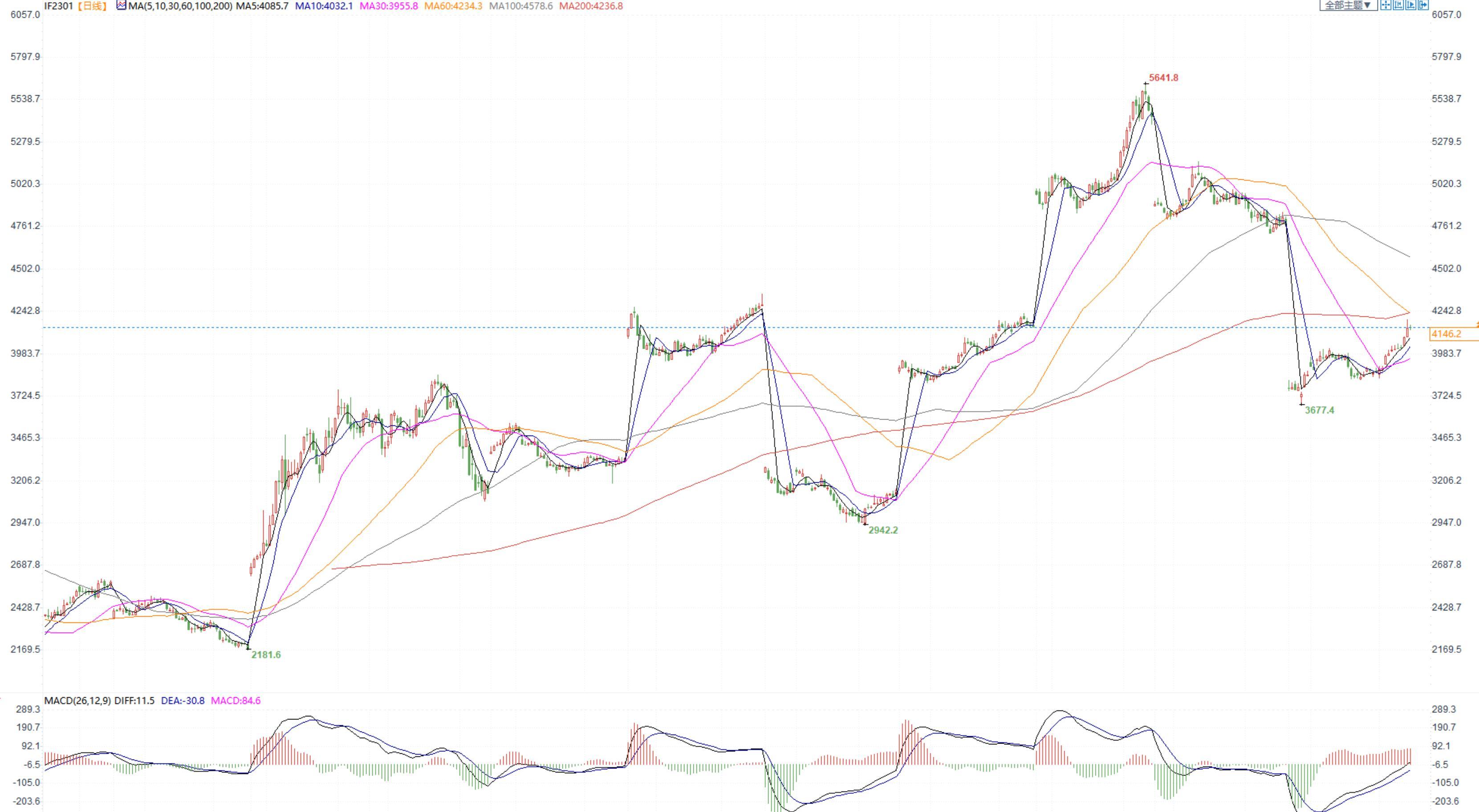 【今日涨跌】四大期指涨跌互现。IH2301收盘价为2832.6,收跌0.39%;IF2301收盘价为4147,收跌0.11%;IC2301收盘价为6137.2,收涨0.03%;IM2301收盘价为6608.2,收涨0.10%。