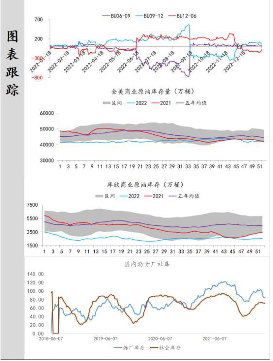 供应端:据美国能源信息署最新数据显示,截止2023年1月6日当周,包括战略储备在内的美国原油库存总量81118.7万桶,比前一周上升1816.1万桶;美国商业原油库存43960.7万桶,比前一周上升1896.1万桶;战略原油库存量37158万桶,比上一周下降80万桶;美国汽油库存总量22677.6万桶,比前一周上升411.4万桶。商业原油库存比去年同期高6.37%,比过去五年同期高0.41%;汽油库存比去年同期低5.80%,比过去五年同期低约6.97%;馏分油库存比去年同期低9.02%,比过去五年同期低17.10%。