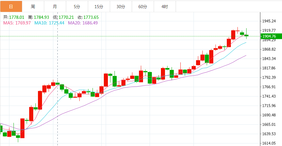 金价周三下跌,回吐了稍早因美国经济数据疲软而取得的涨幅,但仍保持在1900美元的水平之上,美联储关键决策者表明他们打算继续提高利率以抗击通胀。现货金下跌0.2%,至每盎司1904.84美元,稍早一度触及1896.32美元的日低。