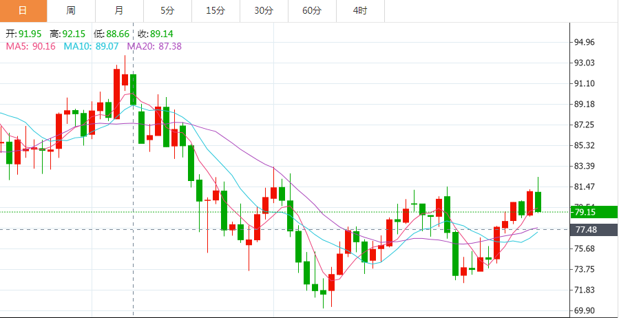 商品收盘情况:布伦特原油期货下跌1.1%,结算价报每桶84.98美元。美国原油期货下跌0.9%,结算价报79.48美元。美国期金结算价报1907美元,下跌0.2%。