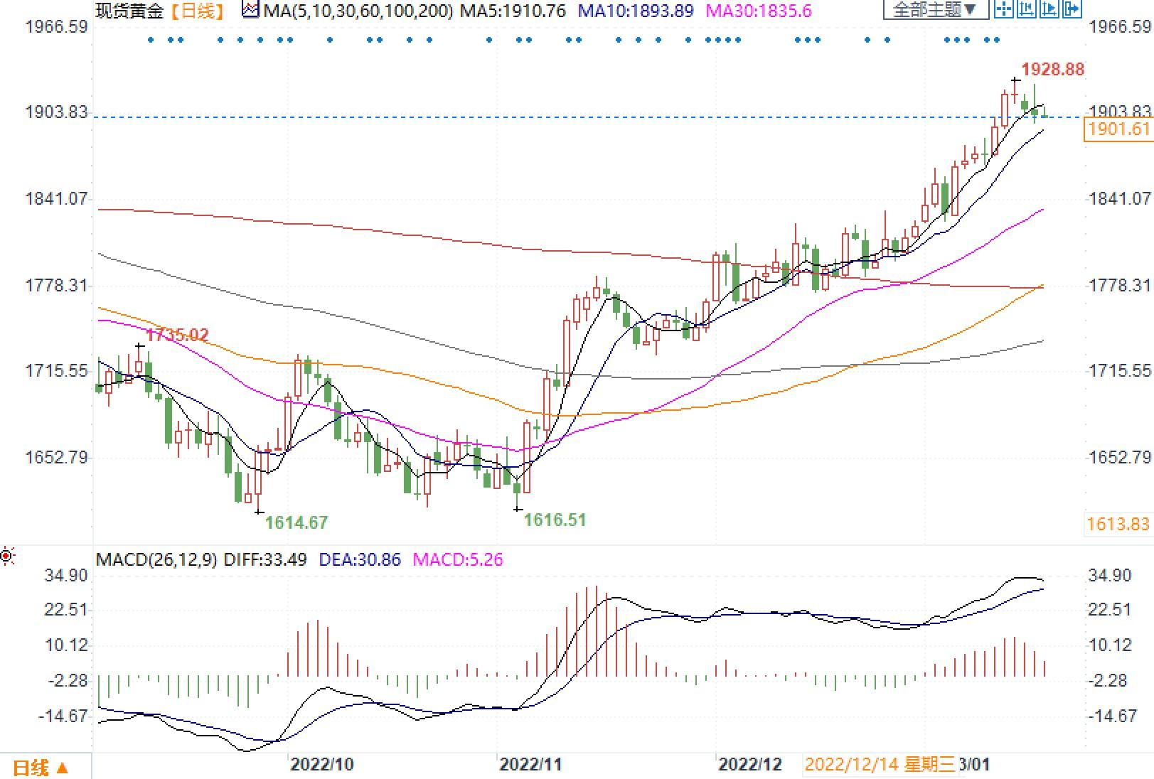 北京时间1月19日11:28,现货黄金报1906.92美元/盎司