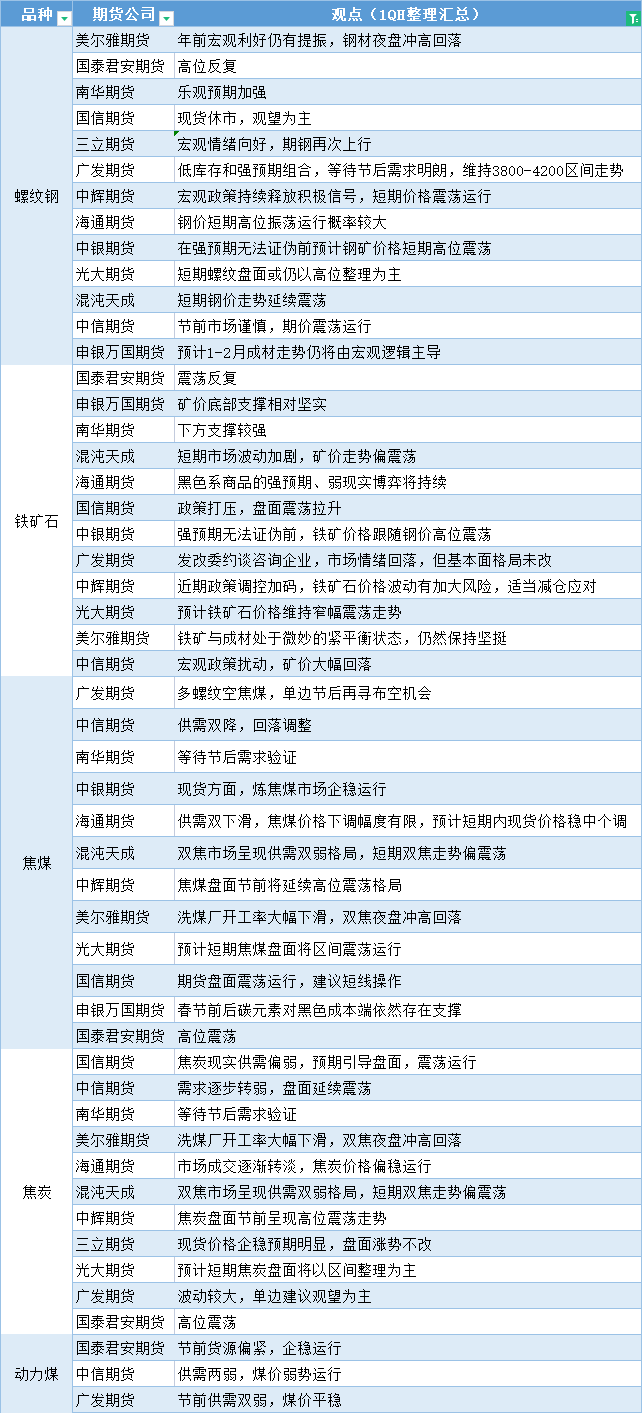 期货公司观点汇总一张图:1月19日黑色系(螺纹钢、焦煤、焦炭、铁矿石、动力煤等) Jan 19,2023 汇通财经APP讯——期货公司观点汇总一张图:1月19日黑色系(螺纹钢、焦煤、焦炭、铁矿石、动力煤等)