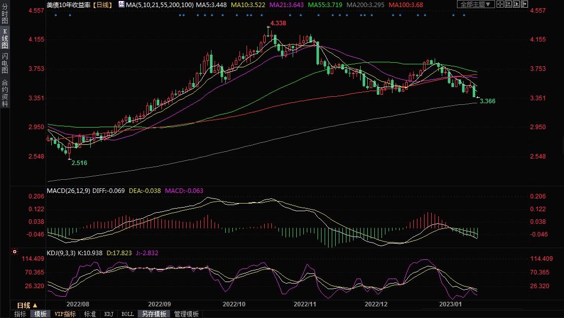 10年期美债收益率周三尾盘跌至3.375%,为9月13日以来最低收盘价。两年期国债收益率达到4.072%,为10月4日以来最低。
