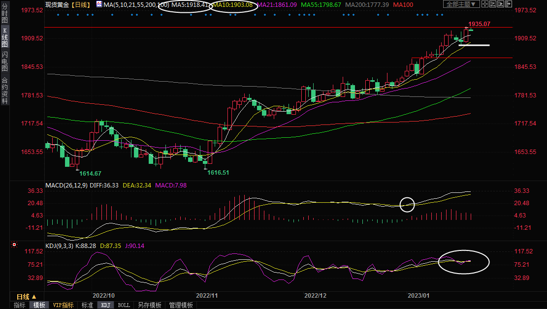 从周四的分时图来看,金价在1923.5、1916.5和1906.5附近分别存在一些支撑。