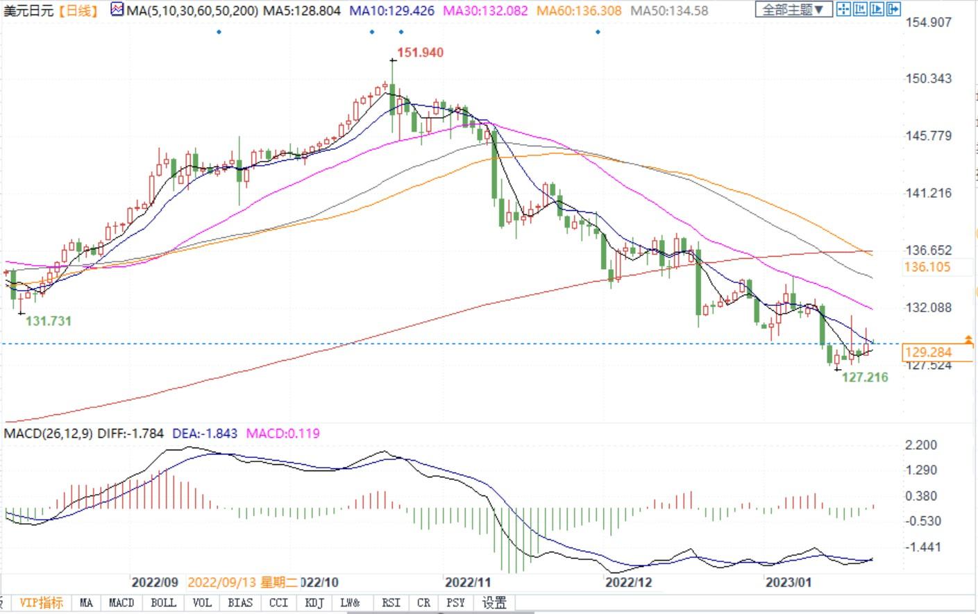 北京时间1月23日8:05,美元兑日元报129.31/33