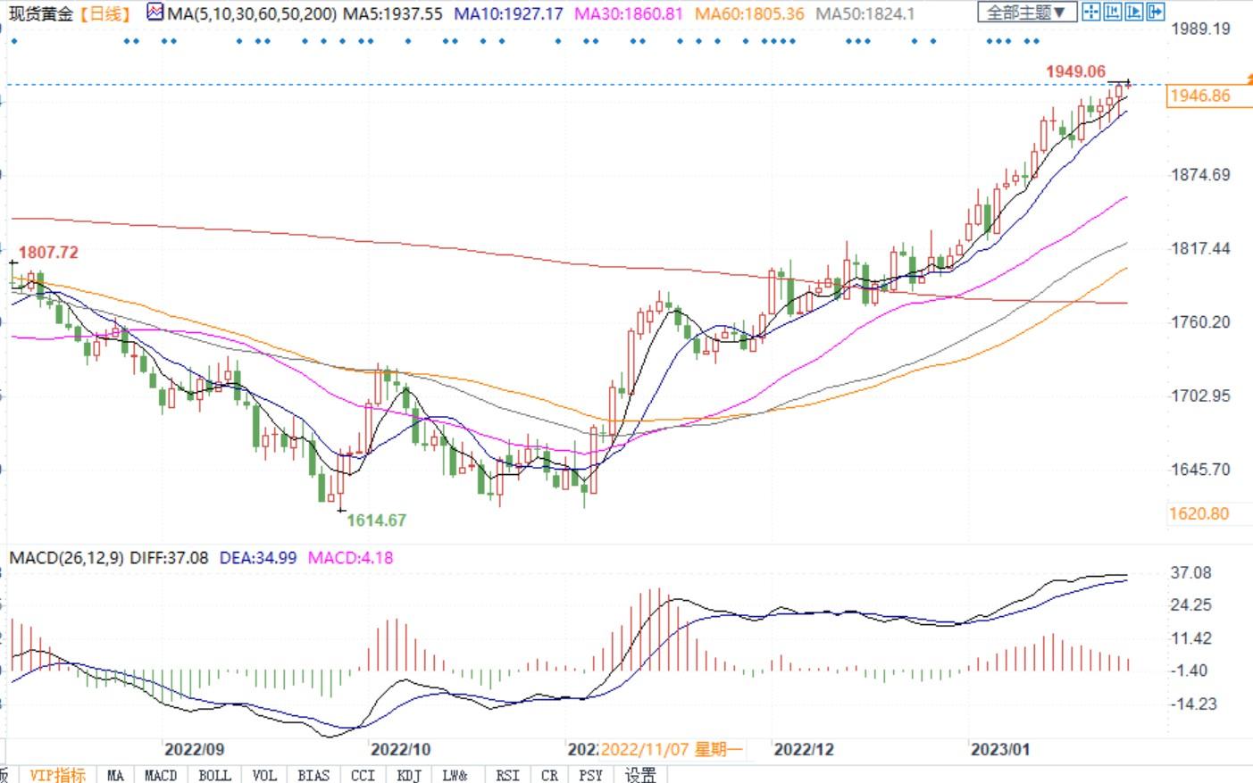 以美元计价的黄金2023年1月表现为2012年以来最好,交易价格接近九个月高点,年初迄今累计上涨逾6%。