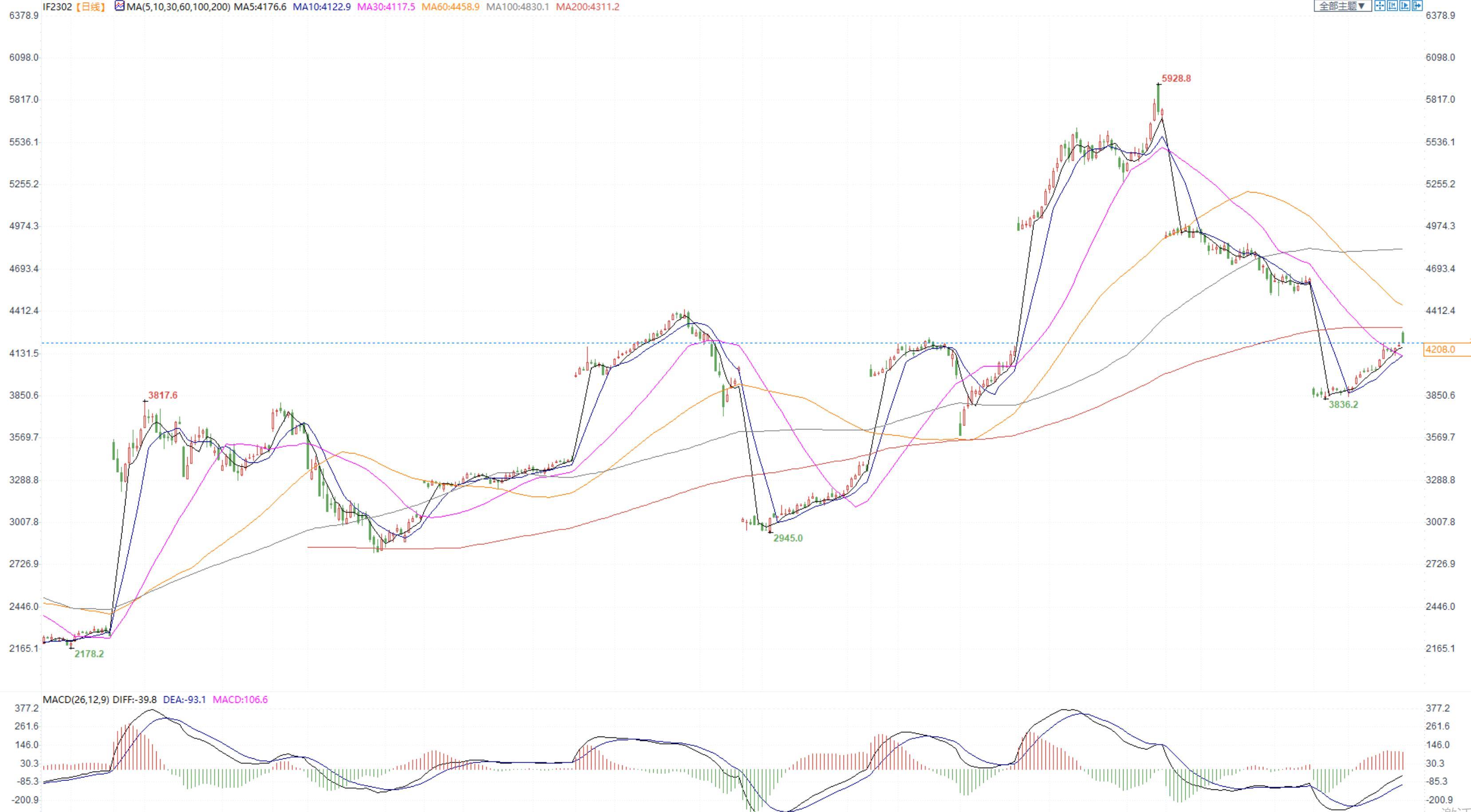 【今日涨跌】四大期指涨跌互现。IH2302收盘价为2840.0,收跌0.03%;IF2301收盘价为4208,收涨0.32%;IC2301收盘价为6282.6,收涨0.21%;IM2301收盘价为6792.8,收涨0.42%。