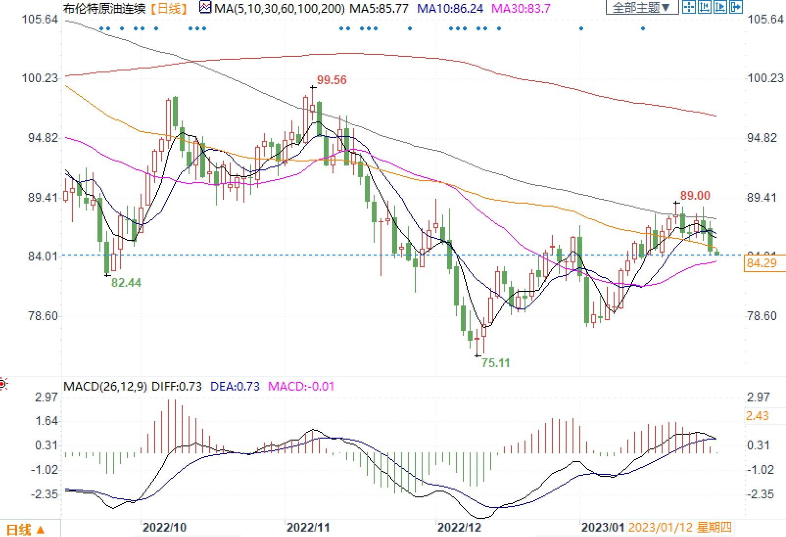 布伦特原油连续日线图