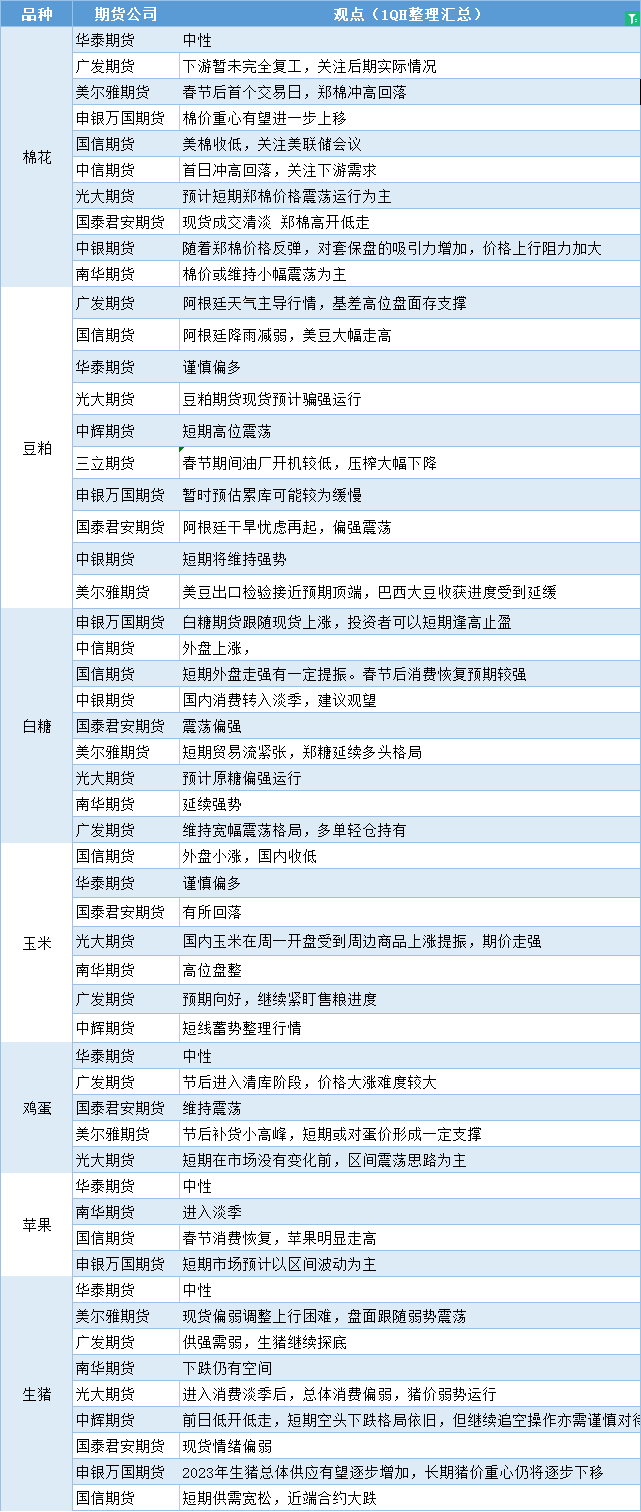 期货公司观点汇总一张图:1月31日农产品(棉花、豆粕、白糖、玉米、鸡蛋、生猪等) Jan 31,2023 汇通财经APP讯——期货公司观点汇总一张图:1月31日农产品(棉花、豆粕、白糖、玉米、鸡蛋、生猪等)