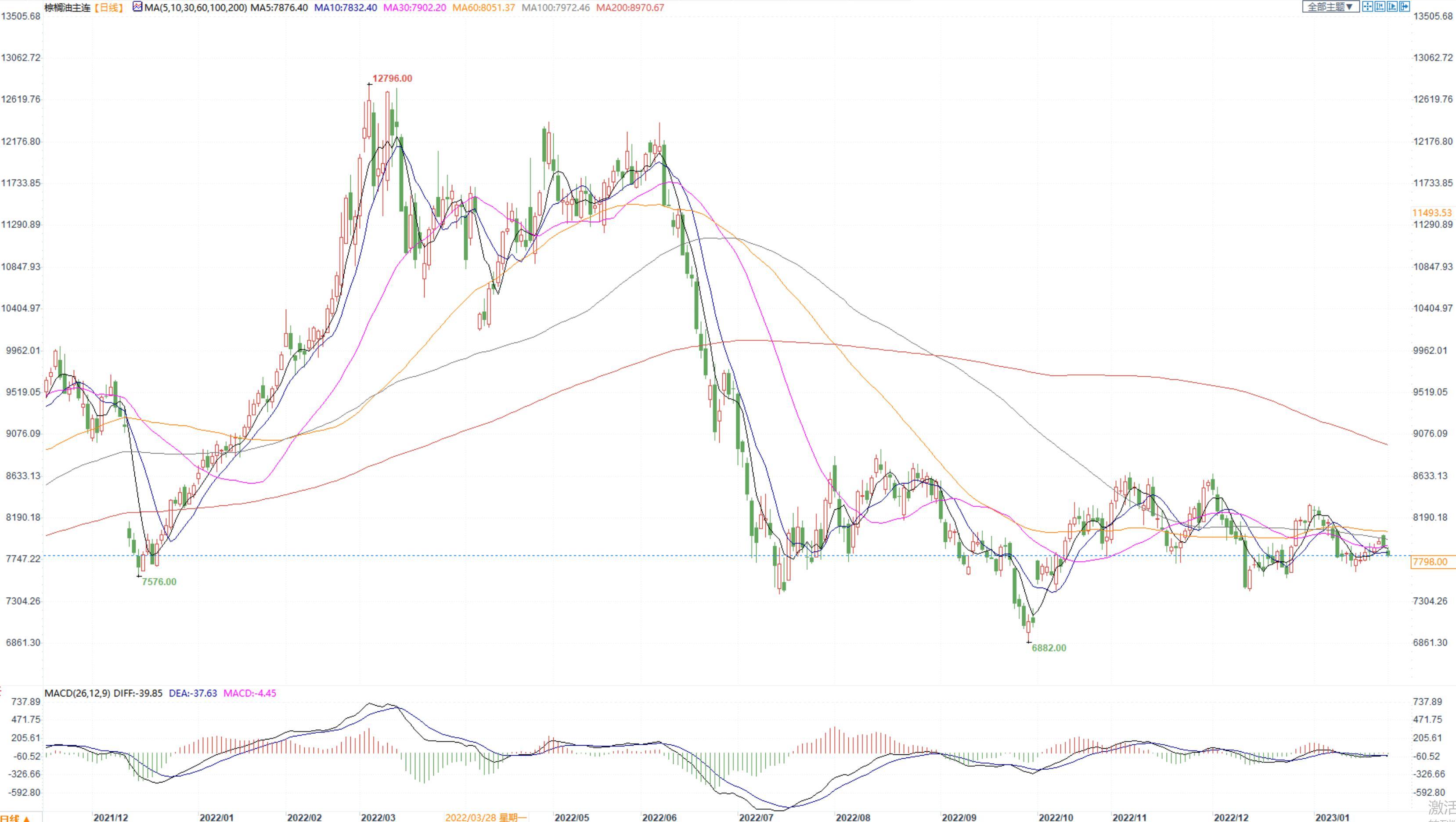 【今日行情】金银全线收涨。AU2304收盘价为421.58,收涨0.11%;AG2306收盘价为5222,收涨0.08%。美元指数小幅走弱,但仍在102关口附近徘徊,十年期美债收益率也有所下行,短期对金银支撑有所增强,中期两大指数预计均将弱势运行,对金银以支撑为主。