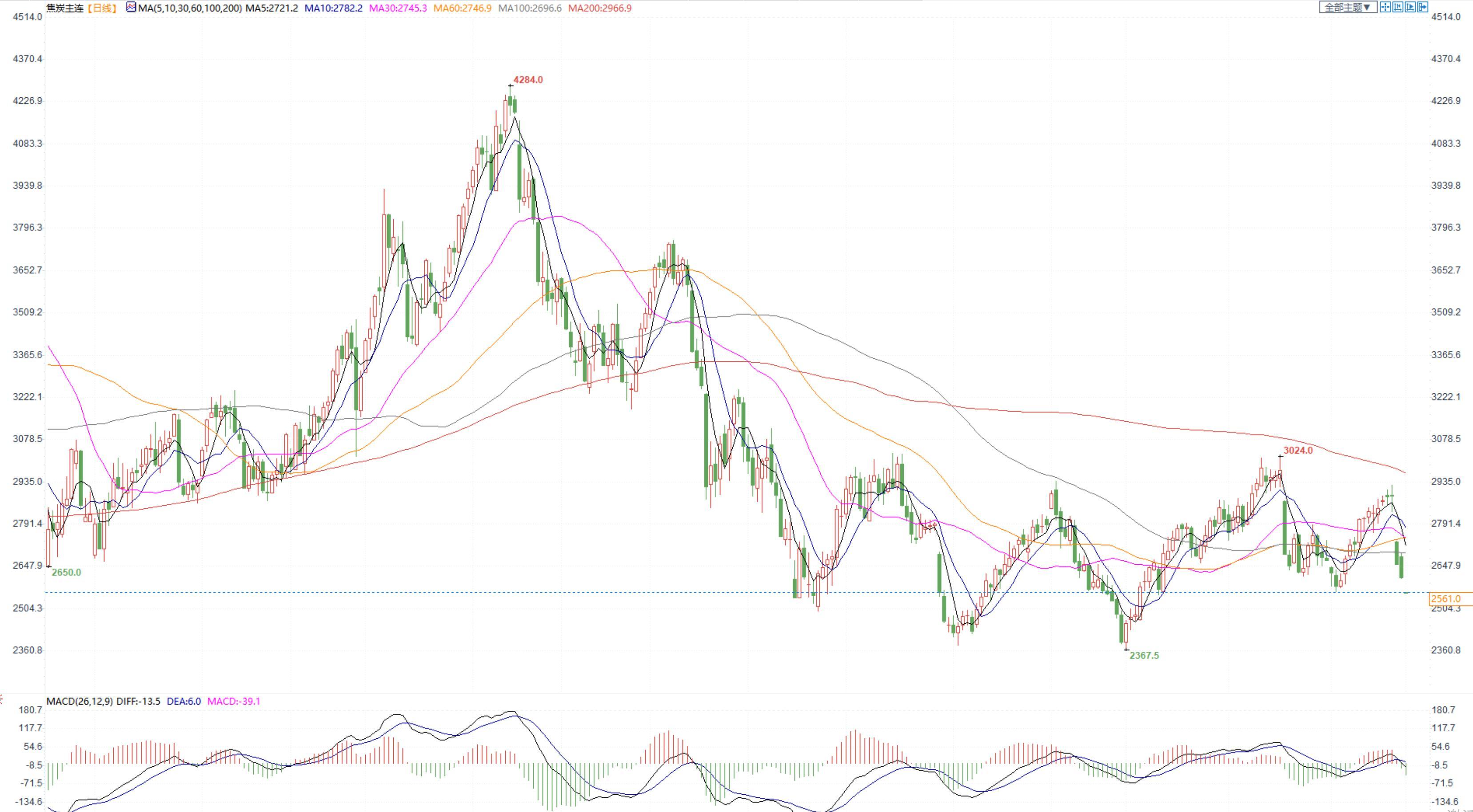 价格:05合约连续三日下跌,今日收于2777.5,港口准一级资源仓单成本2851元/吨。