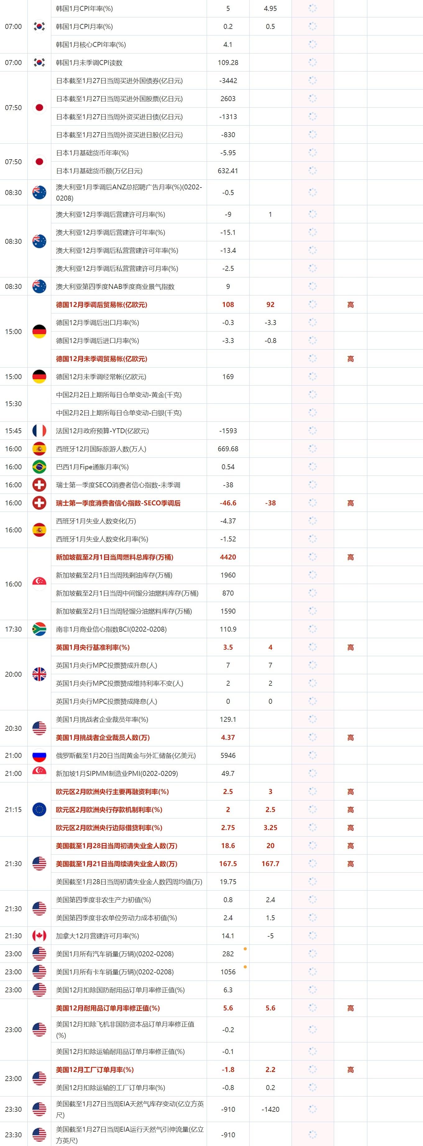 后续及时更新的财历数据请关注:【汇通网2月2日财经日历】