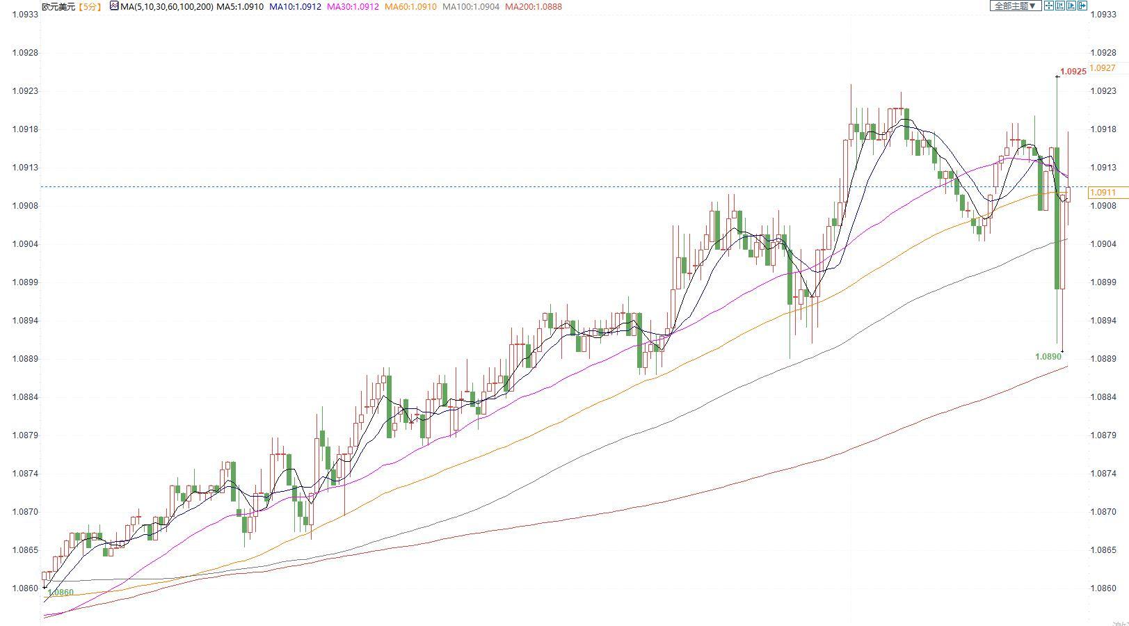 图:欧元兑美元5分钟