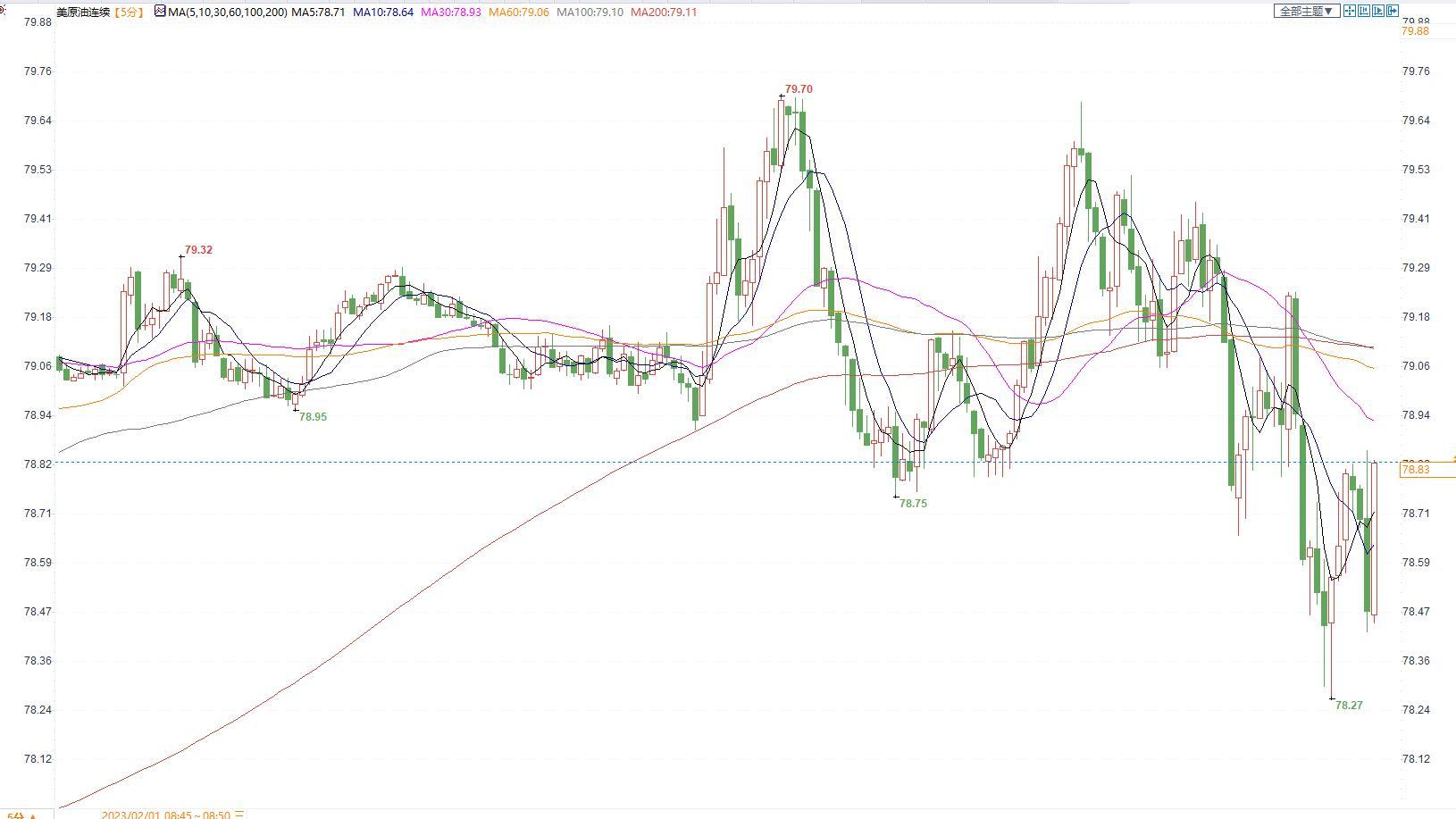 美国原油价格5分钟图显示