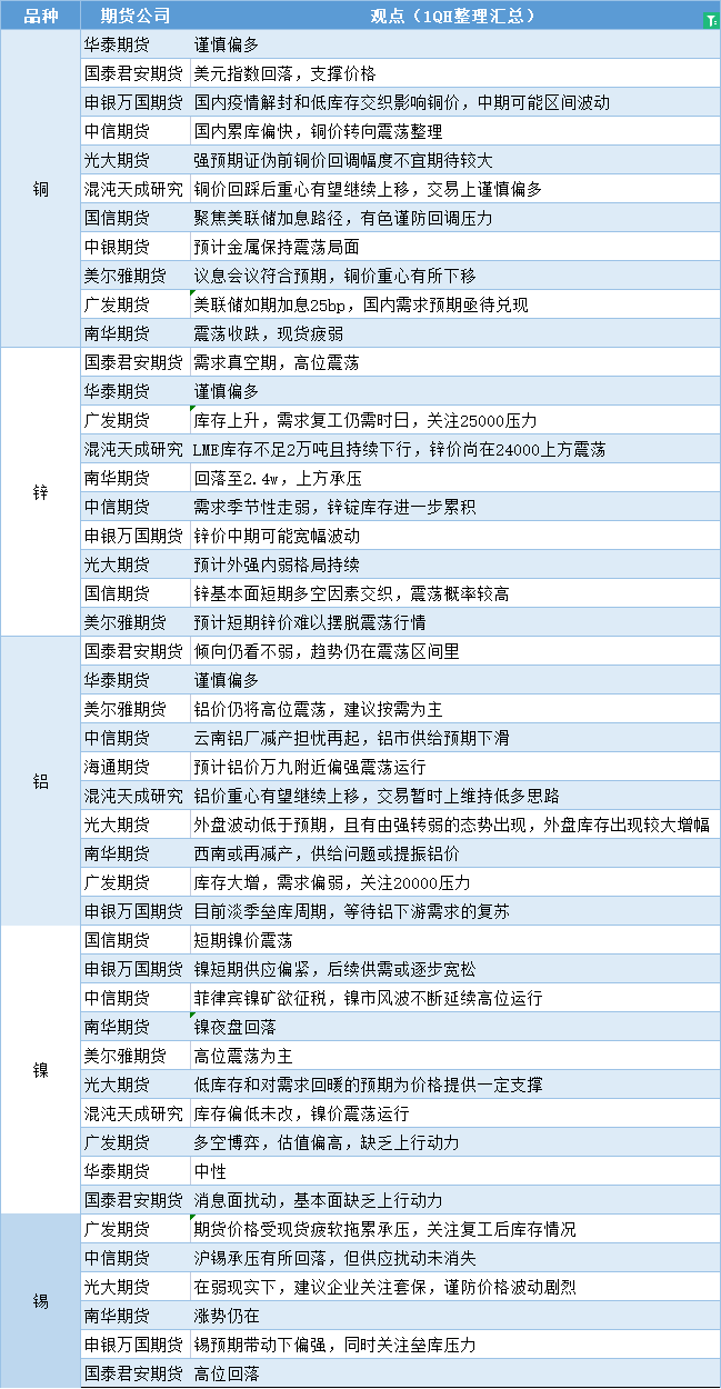 汇通财经APP讯——期货公司观点汇总一张图:2月2日有色系(铜、锌、铝、镍、锡等)