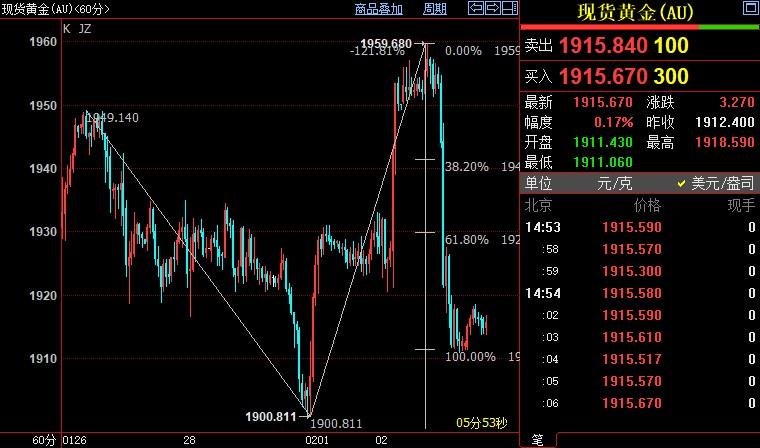 北京时间14:54,现货黄金上浮0.21%至1915.55美元/盎司;COMEX期金主力合约下跌0.07%至1929.5美元/盎司;美元指数上浮0.06%至101.809。