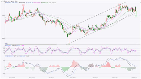 美元指数反弹给沪银压力。沪银跌破上升通道下轨,同时KDJ指标下行,MACD绿柱变长,动能方向偏空,短期沪银可能继续承压。但行情能否反转仍需观察,建议暂时观望为好。