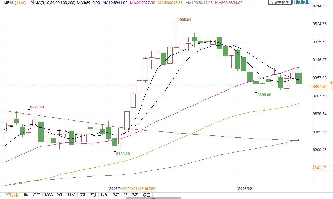 根据芝商所的数据,2月6日铜期货收于每磅4.035美元,铜也创下了3.9930美元的新低,这是铜价自1月10日(3.9875美元)以来的最低水平。