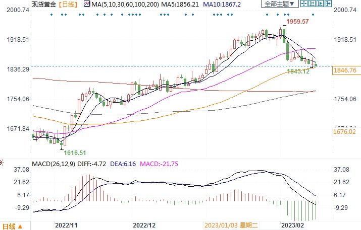 北京时间2月15日13:24,现货黄金报1846.41美元/盎司
