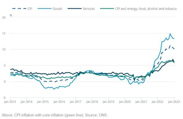 道明证券表示:“央行货币政策委员会(MPC)近期对1月份的通胀预测(两周前发布)再次击中了要害。”英国国家统计局(ONS)表示,英国1月份的整体CPI通胀同比下降至10.1%(市场预计10.3%),而12月份为10.5%。