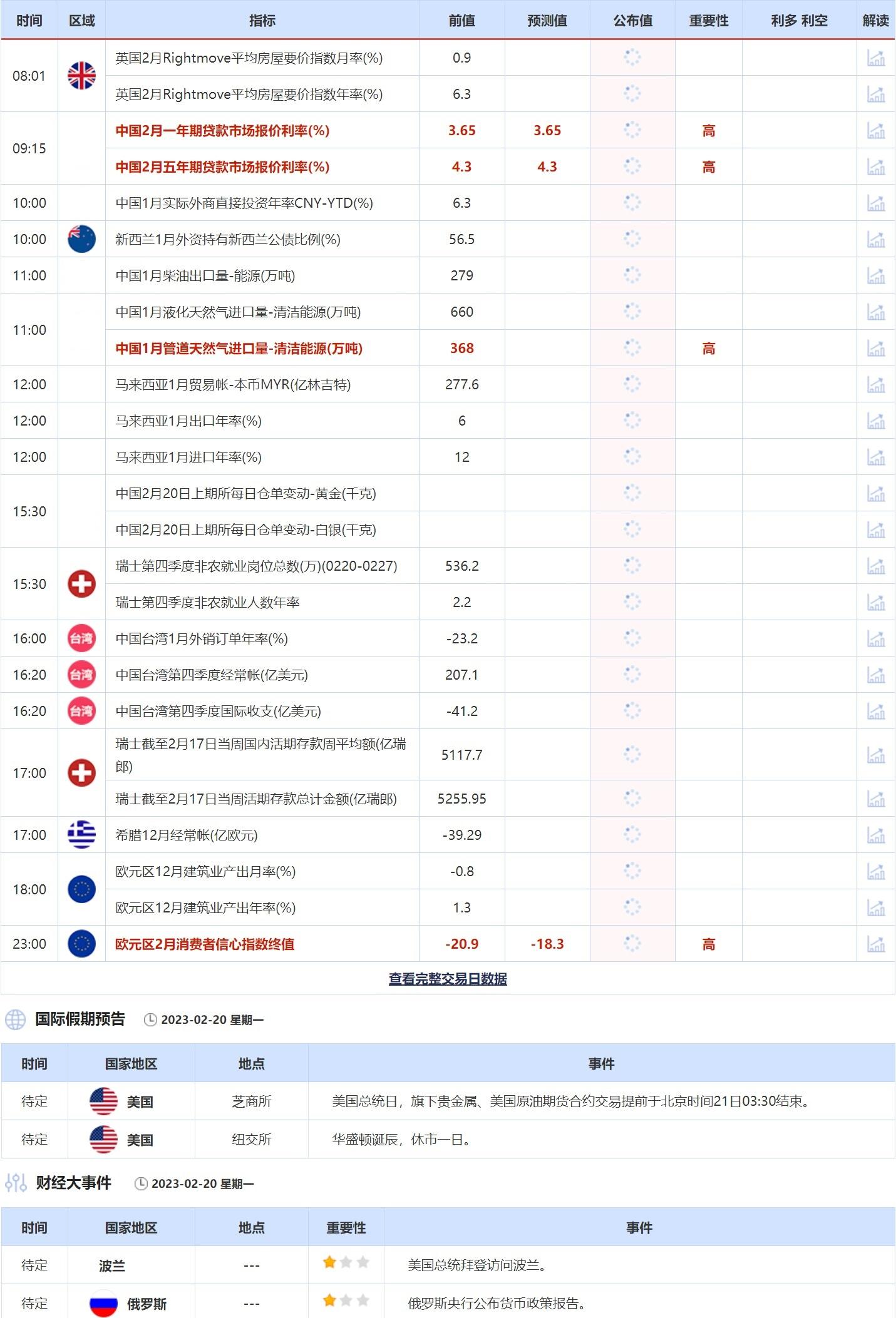 后续及时更新的财历数据请关注:【汇通网2月20日财经日历】