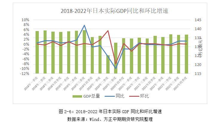 剔除通胀因素,2022年四季度日本实际GDP录得136.88万亿日元,同比增长0.6%,实现连续7个季度同比正增长,但同时也是近7季度同比增速最为缓慢的;环比增长0.2%,继续保持从2020年四季度以来隔季环比正增长的规律。
