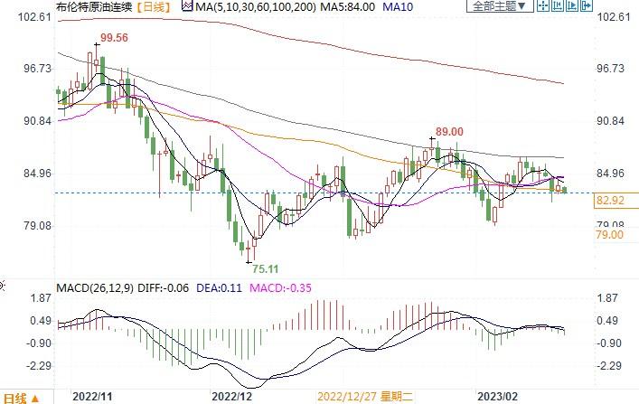 北京时间2月21日14:59 布伦特原油连续 报 82.92 美元/桶