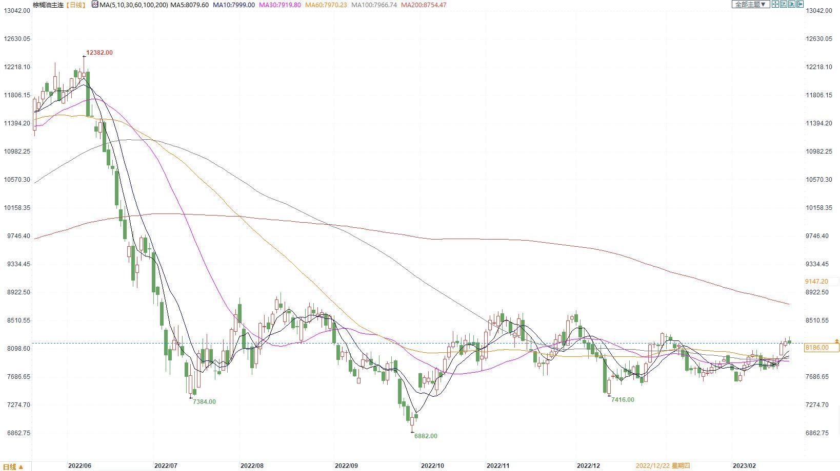 棕榈油2305合约日内跌0.07%,收盘8186元/吨,广州市场棕榈油8170元/吨。