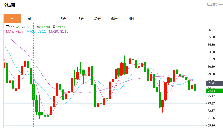 商品收盘情况:全球指标布伦特原油期货收低1.2%,结算价报每桶83.05美元。周二到期的3月美国原油期货下跌0.2%,报每桶76.16美元。次月合约下跌0.2%,报每桶76.27美元;美国期金下跌0.4%,结算价报1842.50美元。