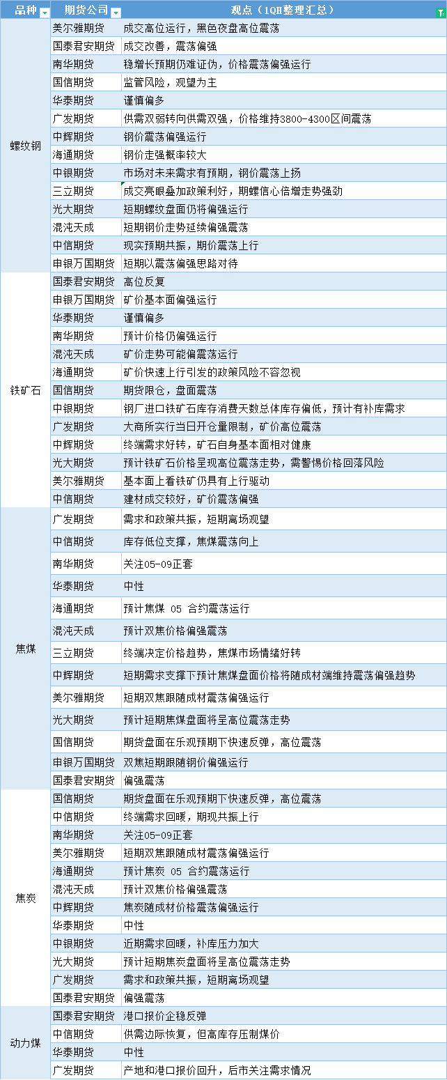 期货公司观点汇总一张图:2月22日黑色系(螺纹钢、焦煤、焦炭、铁矿石、动力煤等) Feb 22,2023 汇通财经APP讯——期货公司观点汇总一张图:2月22日黑色系(螺纹钢、焦煤、焦炭、铁矿石、动力煤等)