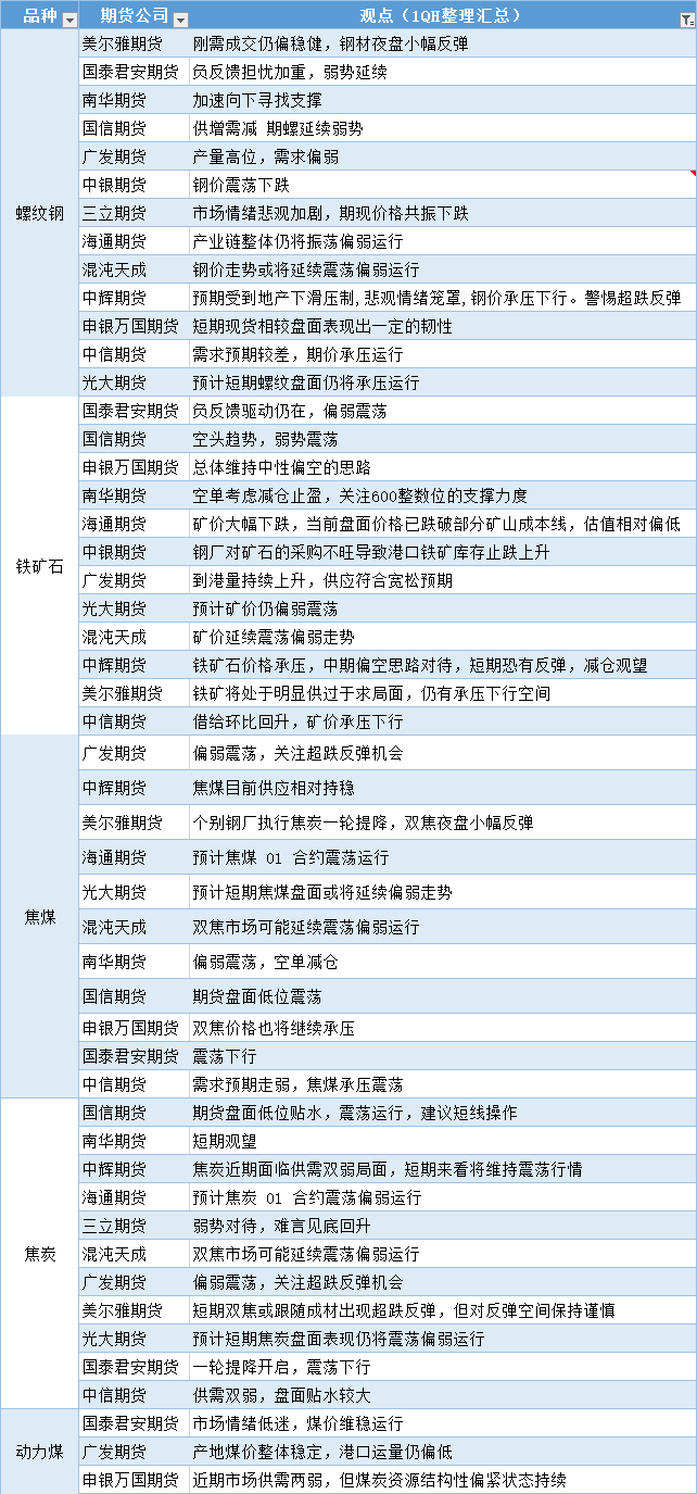 标题:期货公司观点汇总一张图:11月1日黑色系(螺纹钢、焦煤、焦炭、铁矿石、动力煤等)